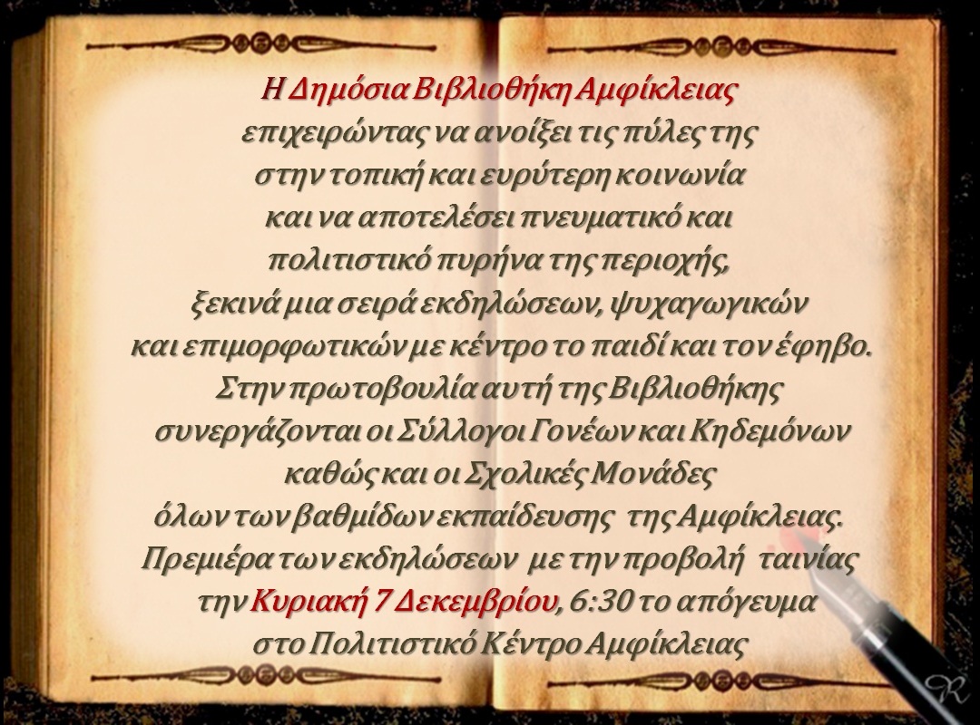 Πρεμιέρα εκδηλώσεων Δημόσιας Βιβλιοθήκης Αμφίκλειας